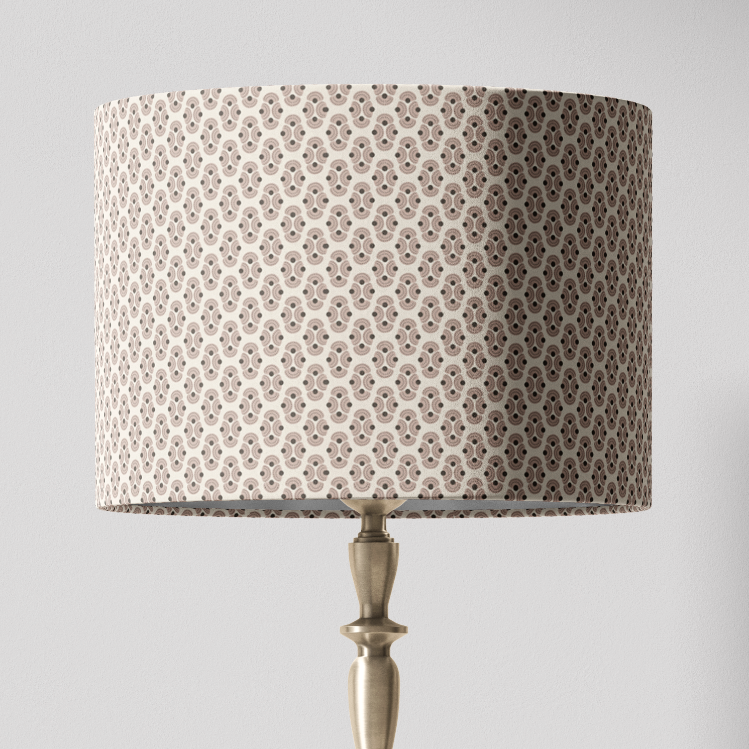 Delight in the charm of a patterned lampshade, adorned with our original hand-stamped design in shades of taupe, camel, and beige.