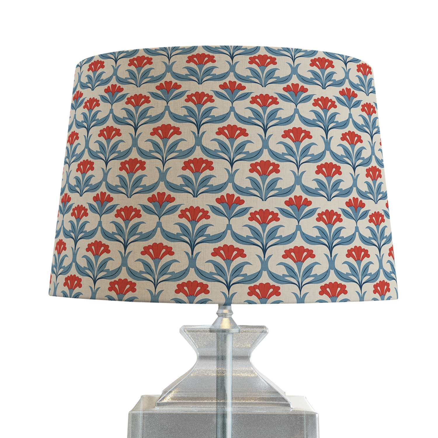 The WESTPORT features a whimsical pattern of dancing florals in a scallop motif - in the statement making combination of contrasting colors of blue and orange coral.