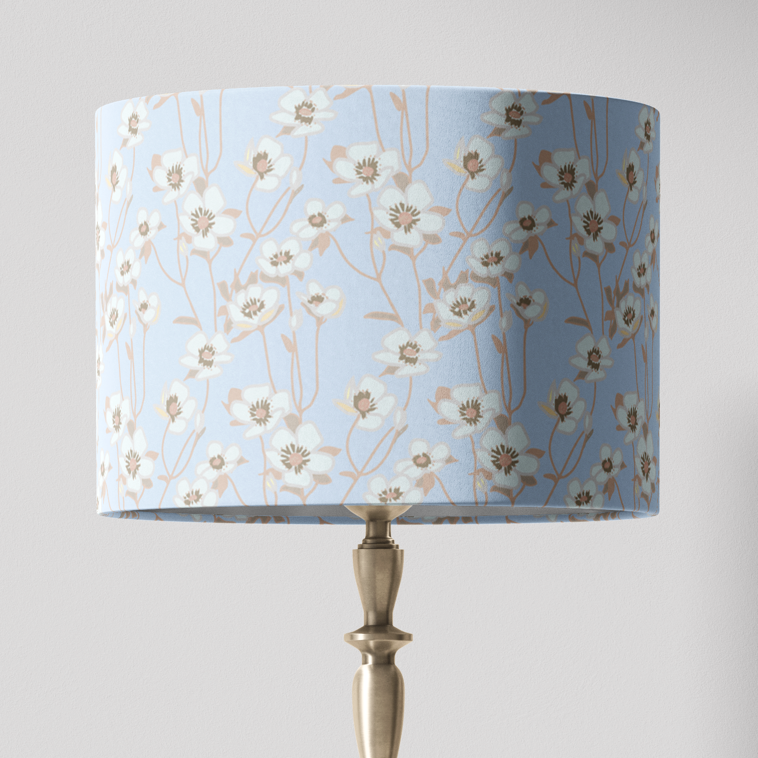 Bring the beauty of nature indoors with a floral lampshade. Adorned with a garden of delicate buttercups on sprawling vines, this lampshade features a hand-drawn original design in light sky blue.
