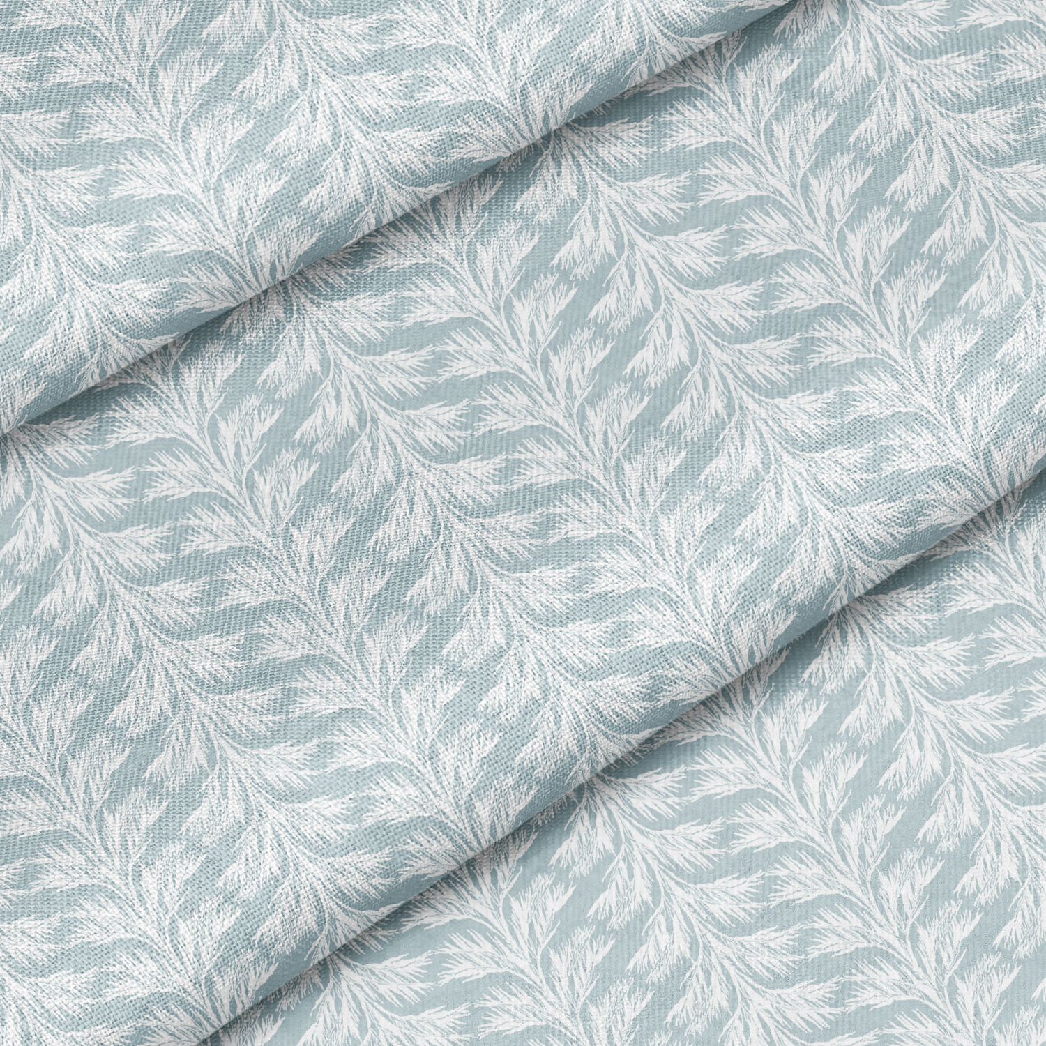 Indulge in the essence of coastal living with our hand-drawn Sabal Stripe fabric, featuring a serene sky blue and off-white color palette, reminiscent of a gentle sea breeze and swaying sabal palm leaves.