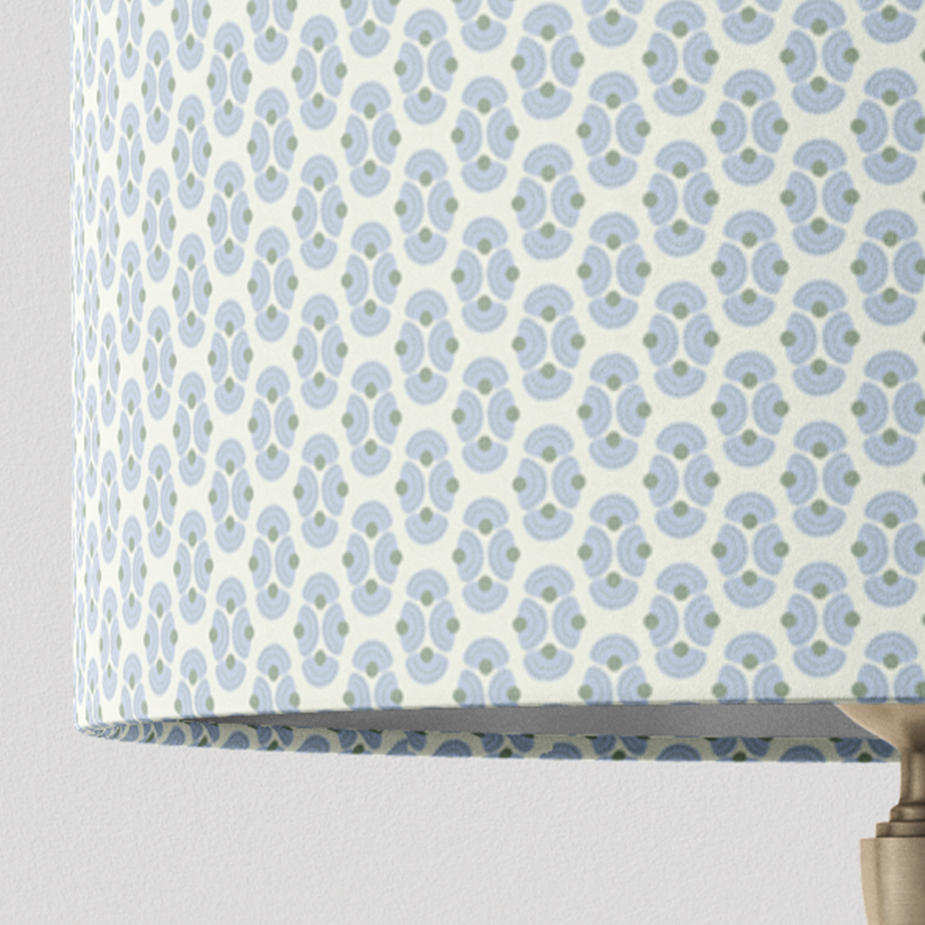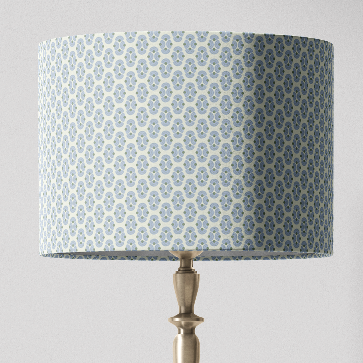 Delight in the charm of a patterned lampshade, adorned with our original hand-stamped design in shades of sky blue, celadon, and sage green.